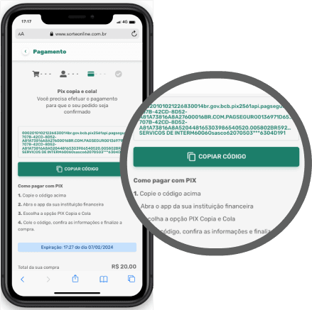 2 - Clique no botão 'Copiar Código' e cole no seu App de pagamento